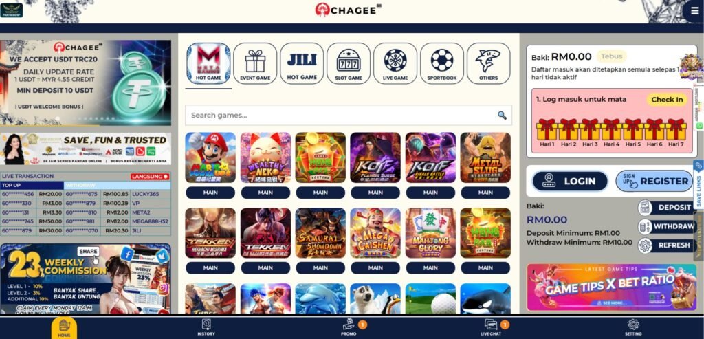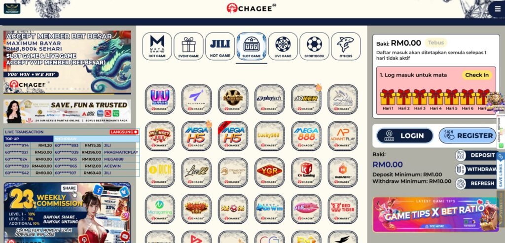Among Chagee88’s many great features is its extensive library of slot machines. Pragmatic Play, Mega888, 918Kiss, Spadegaming, and Nextspin are just a few of the well-known names among the more than 35 top providers that the platform partners with. Thanks to this varied lineup, gamers may choose from hundreds of slot machines that suit their personal tastes.